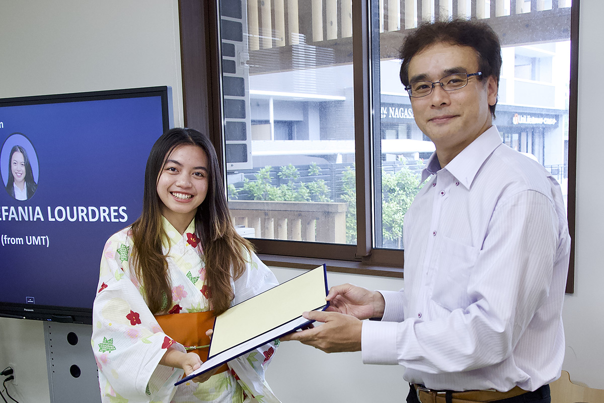 Nagasaki University students who had joined the AFIMA short-term exchange program also came to the ceremony and expressed their appreciation.