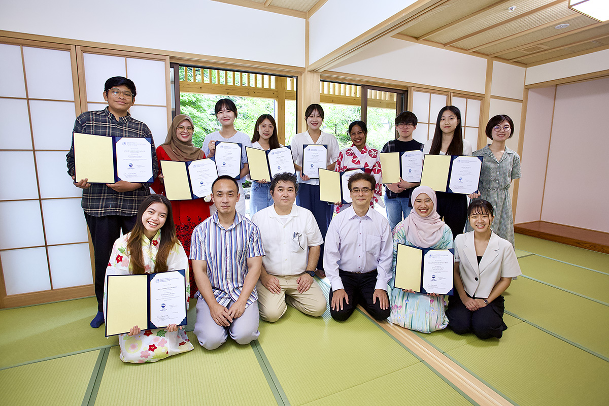 The 15 students were handed their diplomas and commemorative gifts by Professor Kazuaki Kawamoto, who were all smiles and refreshed. Before the award ceremony, they each gave a short speech, thanking their teachers and others involved and sharing their memories of the three months.